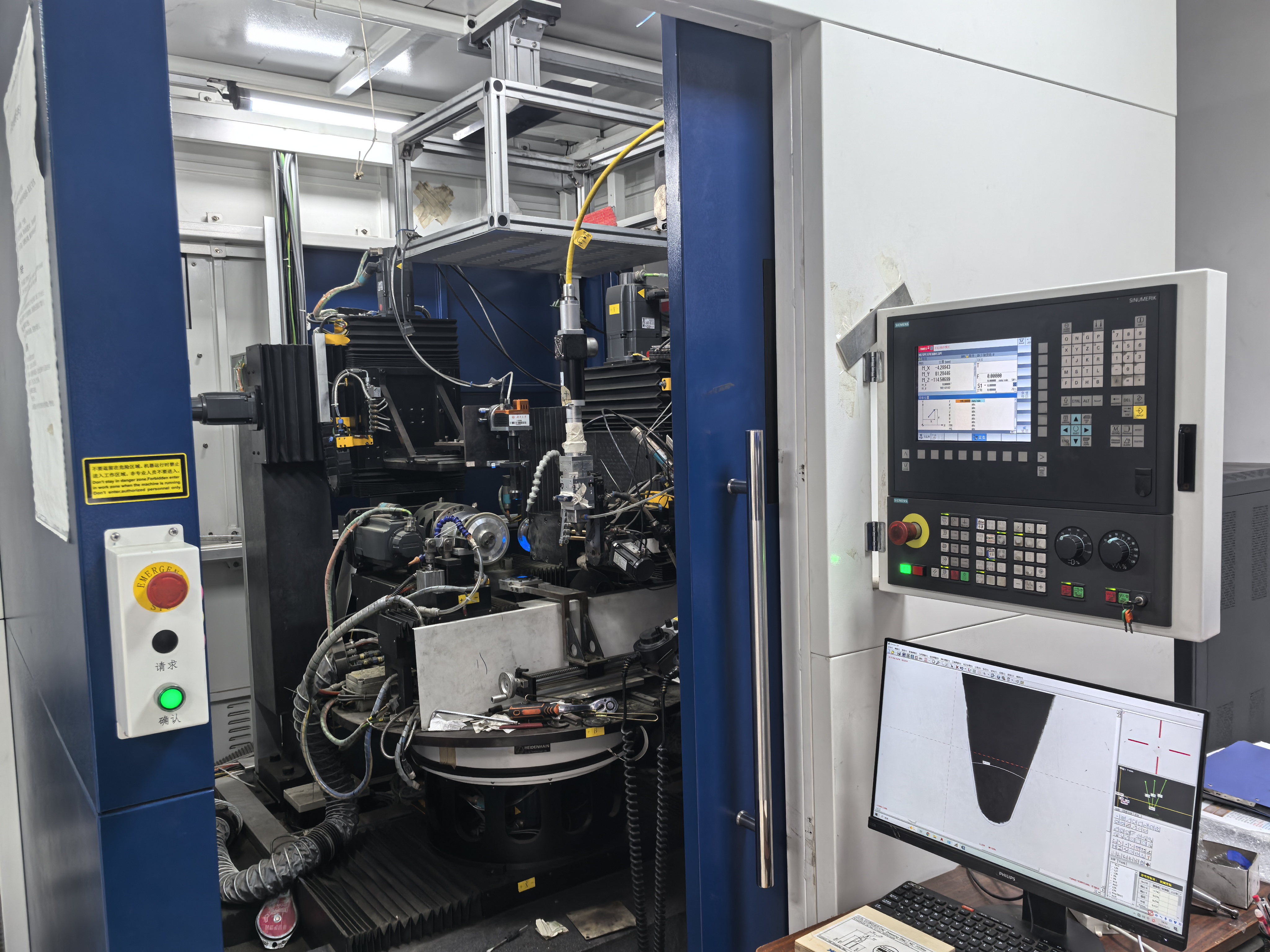 本团队创新研发出全球独创智能激光开微槽装备,具备高精度、高效率两大优势,核心技术为国际领先。基于偏转激光开微槽技术,有效地减小微槽轮廓误差,有效避免激光遮蔽效应和斜面分散效应的影响;基于多轮廓图像合成在线视觉检测,精确控制修整余量并解决盲修时轮廓尺寸不能实时显示等问题;基于在线视觉检测、CAM和工艺数据库,实现晶圆倒角金刚石砂轮开微槽智能化。团队依托于国家级重点研发实验平台进行长达八年的研发,团队核心研发人员集聚哈佛大学、东京大学、湖南大学等高校博士人才,研发出全球独创首台智能激光开槽装备,核心技术国际领先,应用于歼-20发动机叶片返修滚轮做修整,在半导体领域为国内大型晶圆厂商解决依赖进口倒角砂轮的开槽和返修,应用市场规模巨大且技术壁垒强。
